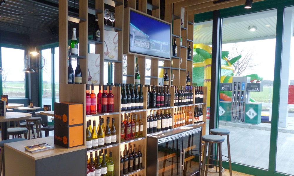 • fünf Tanksäulen mit separater Spur für LKW und landwirtschaftliche Großmaschinen, insgesamt 16 Zapfstellen